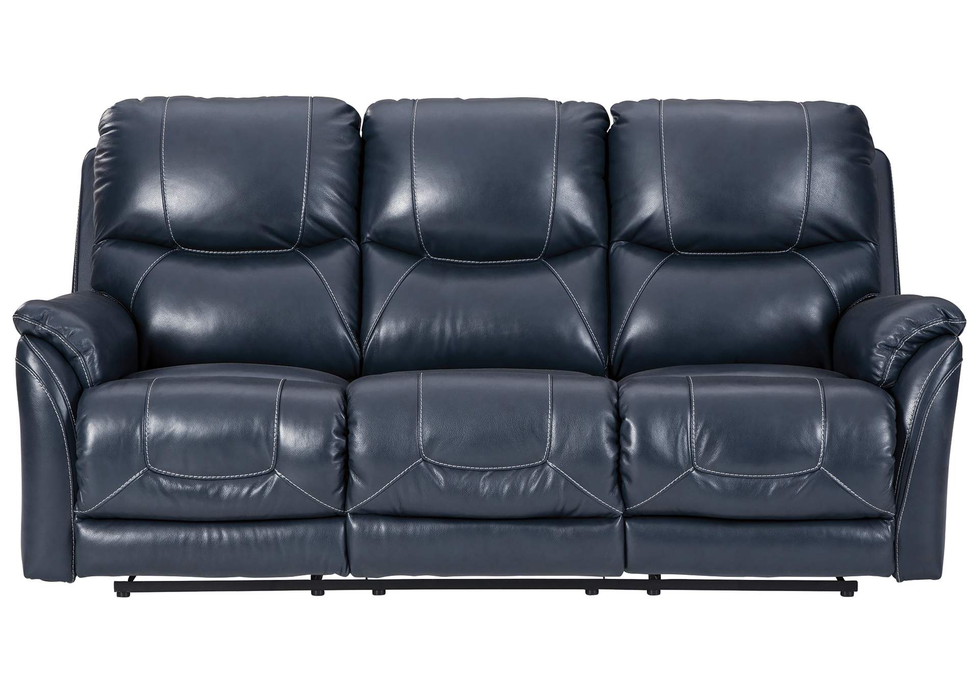 What could be better than the indulgent feel of genuine leather? How about fashion-forward looks to match. And a one-touch power control that delivers unsurpassed comfort and support. Rest assured, this power reclining sofa with 43" high back is designed to pamper from head to toe. Sporting a real leather seating area for buttery-soft pleasure, this contemporary reclining sofa with distinctive jumbo stitching takes it up a notch with one-touch power lumbar support and an Easy View™ power adjustable headrest that lets you fully recline and still have a primo view of the TV. Let's not forget the USB plug-ins that let you recharge while you unwind.